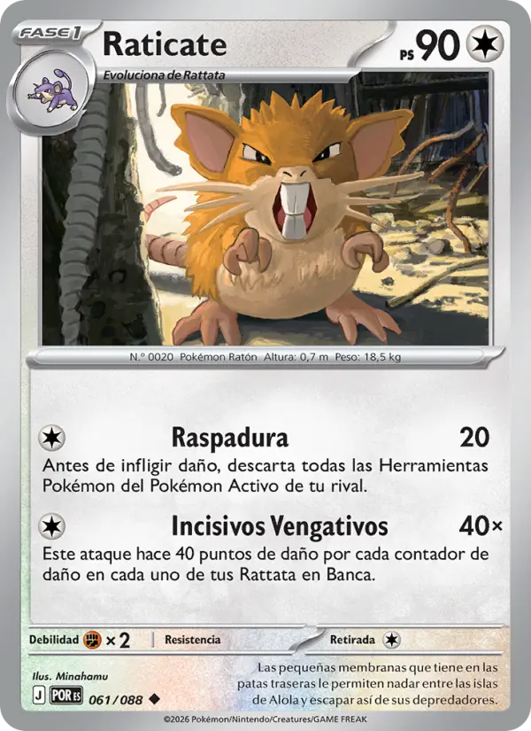 Este ataque hace 40 puntos de daño por cada contador de daño en cada uno de tus Rattata en Banca.